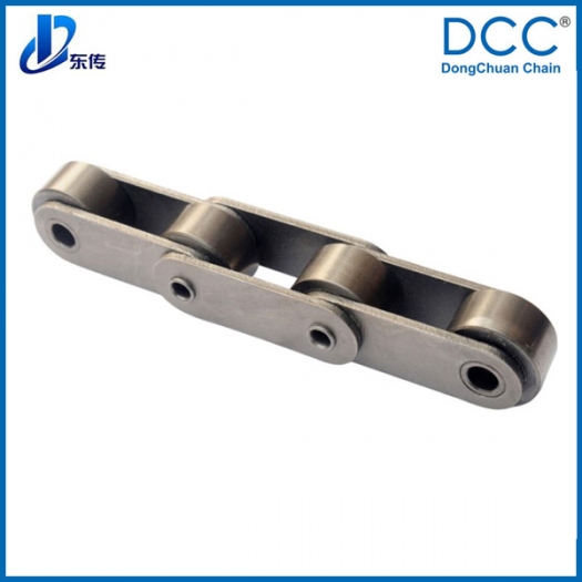 鏈條主要用于工程機械,鋪路機使用,鏈條為雙排鏈,在兩鏈條間裝配刮板,我們在裝配刮板的部位采用焊接工藝,并在鏈板中間沖定位孔,焊接附件用油壓機壓入鏈板后再進行焊接,增強附件的焊接牢固度,中間的刮板用中碳鋼熱處理,使刮板強度更高,更耐磨。并用平面磨床磨平刮板的兩平面,減少鏈條與設(shè)備間的間隙,通過以上這些工藝措施,鏈條的使用壽命得以大大的提高。